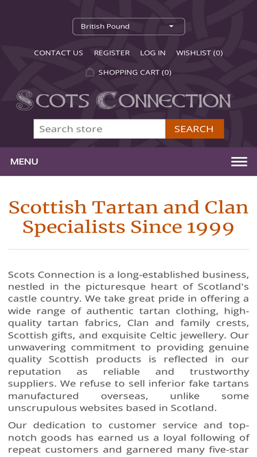 authentic tartan fabric, clothing, clan crests & jewellery. celebrate your scottish family heritage with gifts from scots connection. trusted service since 1999