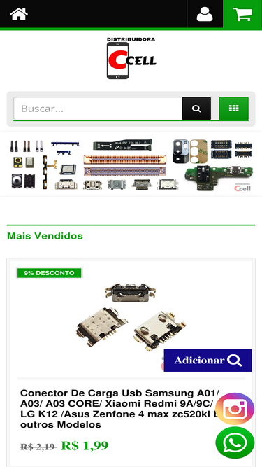 88%Distribuidora Ccell Distribui Componentes e Peças para Celular e Tablet, e Caixinha de Som. Microfone, alto falante, conector de carga, leitor d...