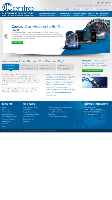 centro incorporated is the rotational molding leader in design, engineering, development, and production of custom rotationally molded products with focus on conversion to plastics and plastic tanks.