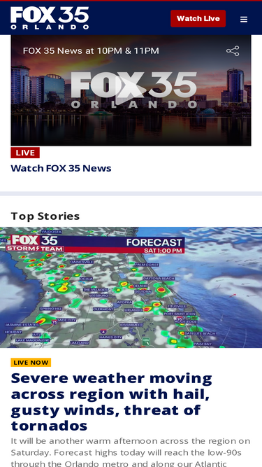 95%Central Florida area news, weather, radar, sports, traffic, live newscasts, and more. From WOFL-TV FOX 35 News in Orlando, your weather authority.