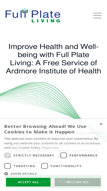 77%Full Plate Living helps you add more fiber to the meals you're already eating. It's a small-step approach that can lead to big health outcomes. Full Plate Living is a free service of Ardmore Institute of Health.