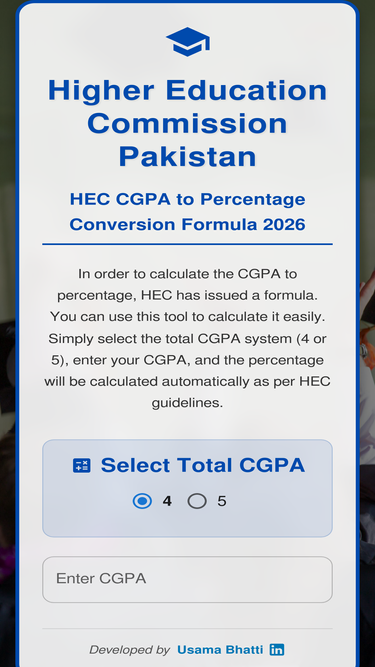 Our CGPA to Percentage Calculator is the most accurate tool for 2025. Easily convert CGPA GPA, SGPA, and grades in one place.