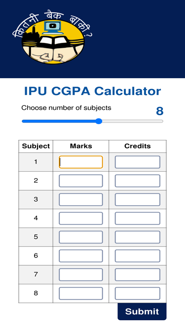 79%Online CGPA Calculator according to the IPUniversity's cgpa calculation algorithm. How to calculate CGPA for IPUniversity? Use the online ipu cgpa calculator.