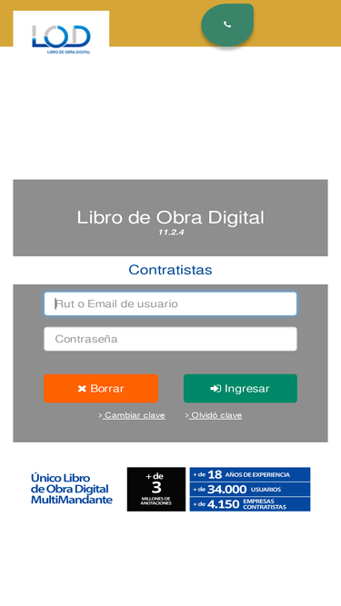 85%Moderno Servicio Web, que estructura, formaliza y registra digitalmente las comunicaciones necesarias en la administraci�n de contratos.Con mas de 18 a�os de experiencia, sirviendo a m�s de 30 Grandes Empresas Mandantes y m�s de 2.500 Empresas Contratistas; habiendo registrado m�s de 2,8 millones de anotaciones.