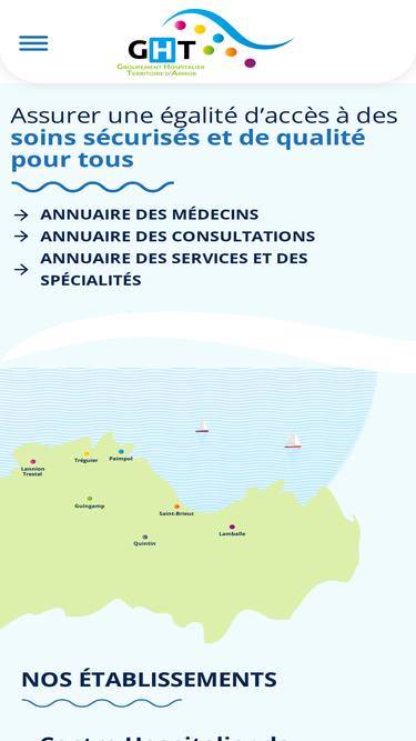 55%Bienvenue sur la page d'accueil du GHT Armor regroupant les établissements de Lannion, Guingamp, Saint-Brieuc-Paimpol-Tréguier et le CH2P.