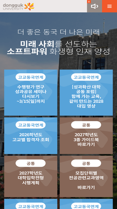 76%동국대학교 입학처 사이트 메인페이지