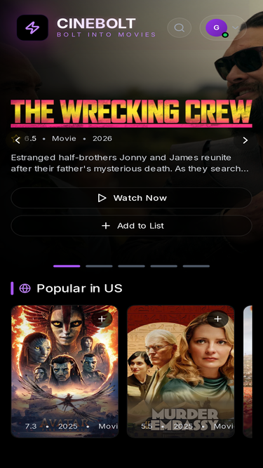 71%Watch the latest blockbuster movies, binge-worthy TV series, and exclusive content on CineBolt. Stream in stunning 4K quality with lightning-fast loading. Your ultimate entertainment destination with thousands of titles.