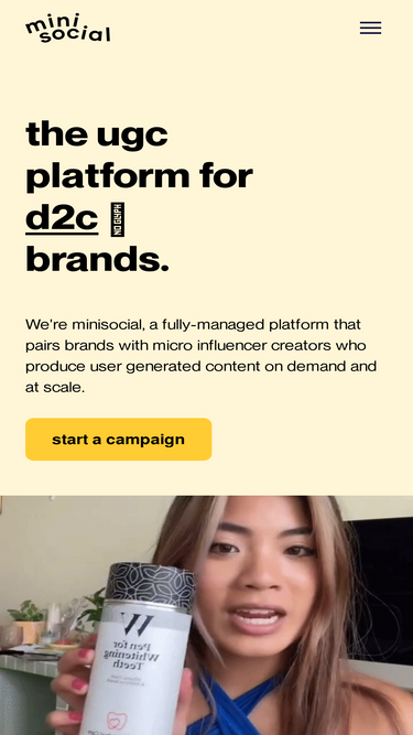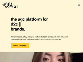 72%we're minisocial, a fully-managed platform that pairs brands with relevent micro influencer creators to produce user generated content on demand and at scale.