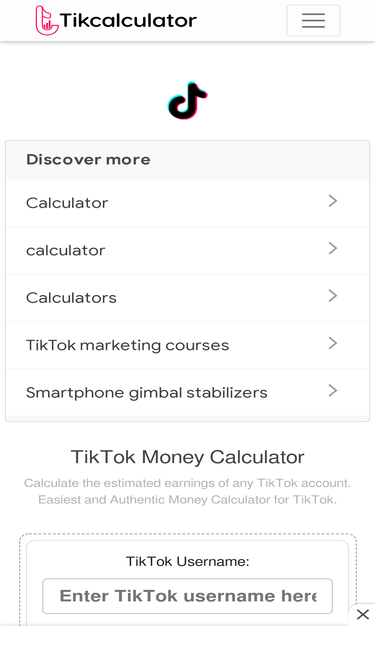 68%TikTok money calculator allows you to calculate any TikTok account estimated earnings and engagements for free. Just type the TikTok username and click on the calculate button.