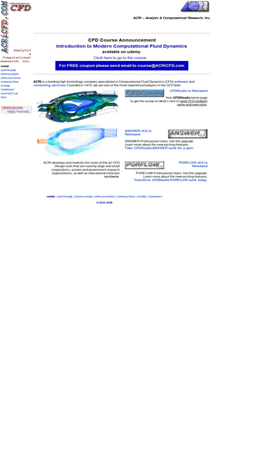 80%acri, inc., is a leader in cfd software, as well as consulting in cfd and environmental and ocean sciences. acri is located in los angeles, ca and has offices in france and india. popular cfd software include answer, porflow, tidal and radm, as well as cfd studio, the new integrated development environment for cfd aplications