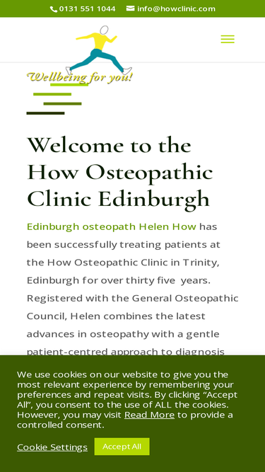 74%Edinburgh osteopath Helen How has been successfully treating patients at the How Osteopathic Clinic Edinburgh for over 35 years.