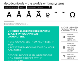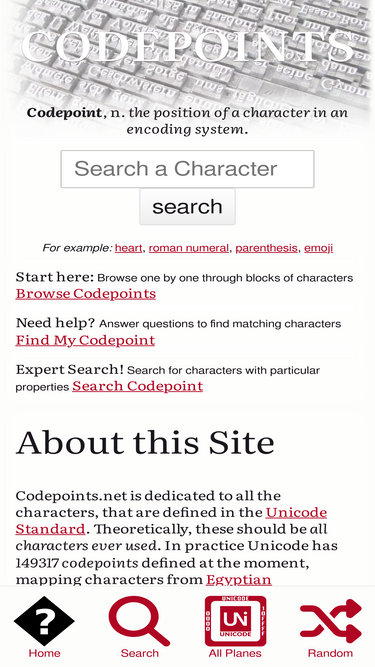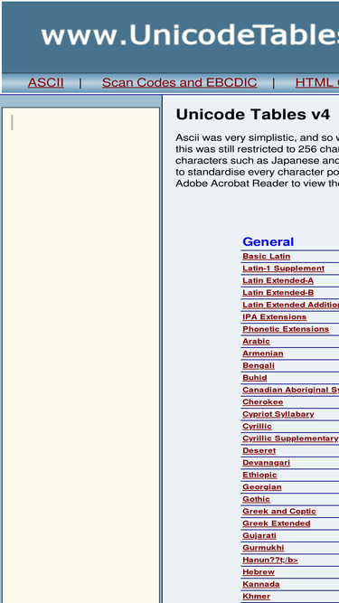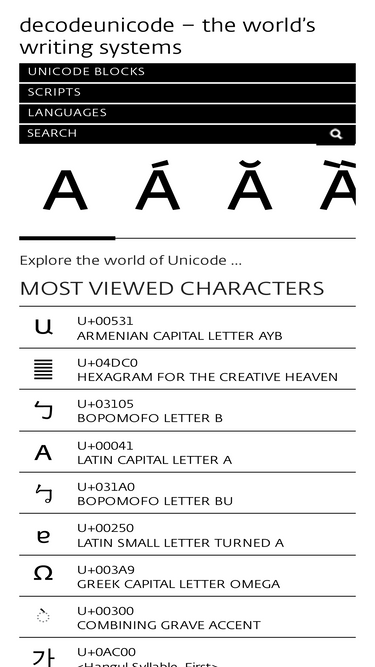 75%unicode一覧表「うにこ~ど」。記号や特殊文字などを探すのに便利な unicode(ユニコード)一覧表 です。逆引き検索も可能。