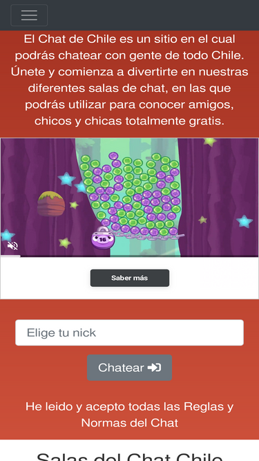 82%chat de chile es un sitio para conocer gente de tu ciudad y de chile. únete y comienza a chatear con amigos en nuestras salas de chat gratuitas.