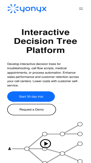 86%Create interactive decision trees to guide call center agents or self-service customers. Improve first call resolution (FCR) and revenue.