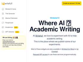 86%writefull's research and development division, where you will find demos of our latest experiments on ai applied to academic writing.