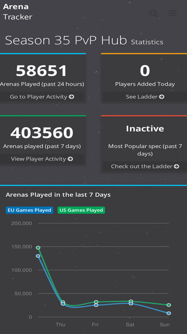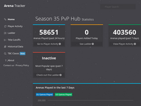 Your favourite World of Warcraft arena & shuffle activity, leaderboards, analytics, player profiles, game history & more.