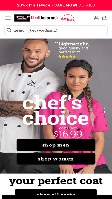 87%best assortment of high quality, comfortable chef uniforms, chef wear, chef coats, chef pants, chef shirts, and chef aprons! shop chefwear.com today and save!