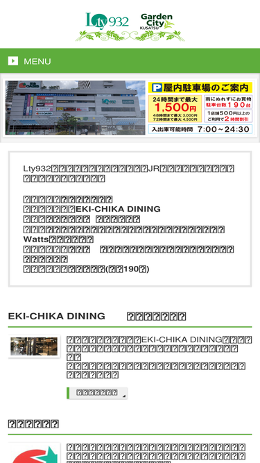 100%JR草津駅に直結の総合商業施設Lty932。屋内駐車場も完備