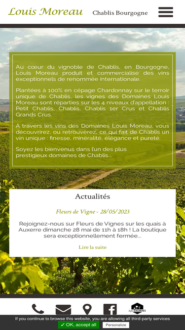100%le domaine louis moreau est né d'une passion familiale à chablis depuis 1814. louis moreau élabore des vins dans un style unique mêlant minéralité, finesse, élégance et pureté.