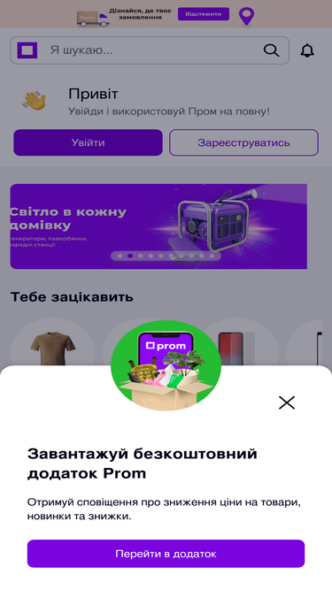 57%Prom – найбільший маркетплейс України, де продаються понад 100 млн товарів від десятків тисяч підприємців з усієї країни. На Промі можна знайти все, що потрібно, за найкращою ціною: від зубної щітки до культиватора для саду та городу.