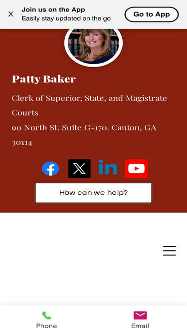 This is the Cherokee County Clerk of Court's Website. Patty Baker is the elected Clerk for the Superior, State and Magistrate Courts. Responsibilities cover Passports, Jury, Deeds and Records, etc... The Clerk's Office is the official record keeper for the Cherokee County Courts.