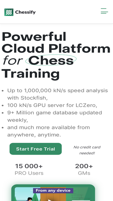 79%Separate from the website, Chessify provides Android and iOS mobile apps for users. Our app offers a unique toolset including a real chessboard scanner.