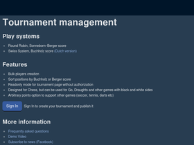 92%free online tournament management. swiss system pairing, round robin. fide compatible.