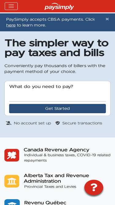 Pay Canadian taxes and bills securely using your preferred payment method, with fees starting at just 1.0%. No account setup required, and we offer the lowest fees. PaySimply is proudly owned, built, and operated by Canadians.