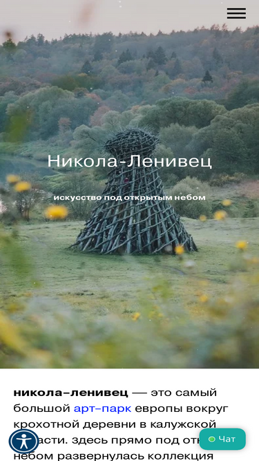 88%Никола-Ленивец — арт-парк, выросший вокруг крохотной деревни в Калужской области. В живописном природном ландшафте представлена коллекция произведений современного искусства и архитектуры. Все арт-объекты специально созданы для этого места за последние 17 лет художником Николаем Полисским и участниками фестиваля Архстояние. Парк открыт круглосуточно и всесезонно..