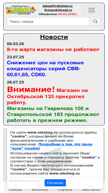 98%сеть оптово-розничных магазинов радиодеталей в краснодаре. доставка по россии. прогрессивная система скидок. в наличии: полупроводниковые приборы, микросхемы, транзисторы, резисторы, конденсаторы, переключатели, разъемы, arduino, датчики, электронные модули, кабель, шнуры, адаптеры питания, батарейки, оборудование для пайки, припои и флюсы.