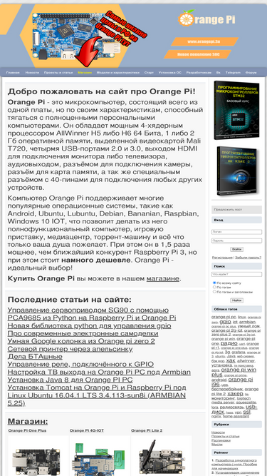 русскоязычный сайт по orange pi. статьи, проекты, модели и общение на тематику микро-компьютеров.