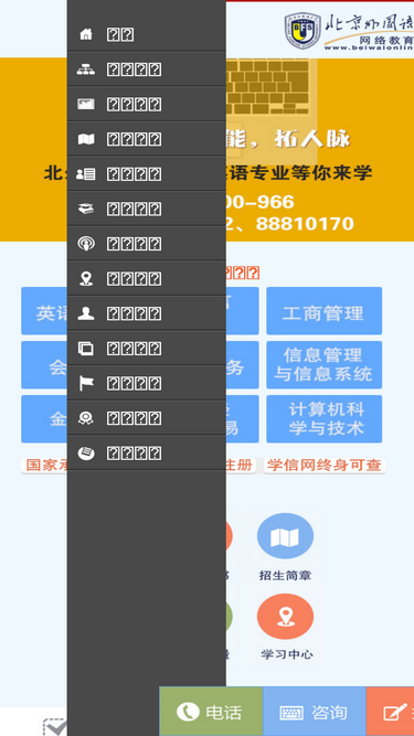 100%北外网院成立于2000年,被评为“全国十佳网络教育学院”。提供成人教育,网络教育,远程教育,继续教育,学历教育,专升本,高起本,高起专,本科第二学历等。热门专业包括英语,工商管理,会计,金融,国际经济与贸易,信息管理与信息系统,电子商务,计算机科学与技术等。