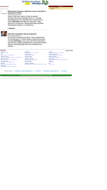83%informator medyczny, dobis. medycyna w internecie. katalog teleadresowy: apteki, gabinety lekarskie, hospicja, przychodnie, sklepy medyczne, szpitale... informacje o ciekawostkach i nowinkach z zakresu medycyny, sympozja i kursy medyczne, kalendarium zjazdów naukowych. jak się leczyć: indeks chorób, leki, witaminy, pierwsza pomoc, zabiegi i operacje.