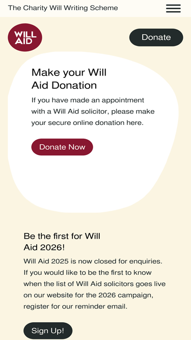 100%get a professionally written will with will aid, the charity will writing scheme. with will aid, everyone benefits. you get a professionally drawn-up will and peace of mind, while the charities receive much-needed donations for their vital work.