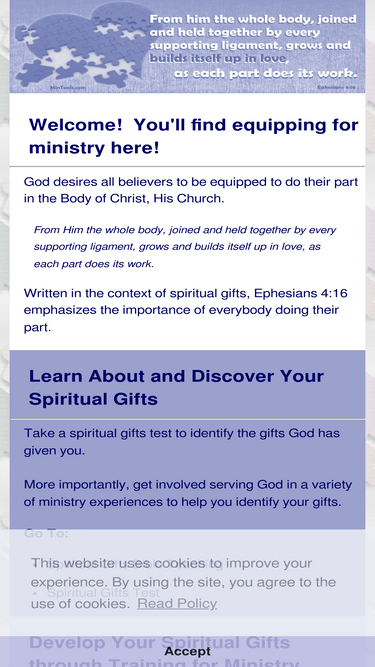 100%Find training and resources to equip you for serving the Lord. Learn about spiritual gifts and get help discovering your best fit in ministry.