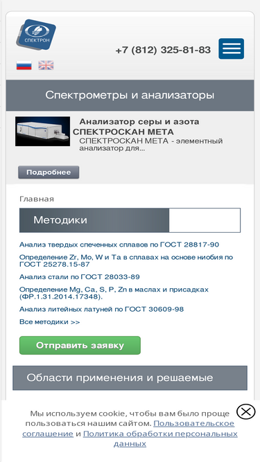 82%Список методик проведения анализов в областях нефтехимии, металлургии, газовой и горнорудной промышленности, экологии. | Заказать анализаторы и спектрометры в компании ООО «НПО «СПЕКТРОН» | Собственная разработка | Сервисная и консультационная поддержка в течении всего времени эксплуатации. ☎ 8(812)325-81-83.