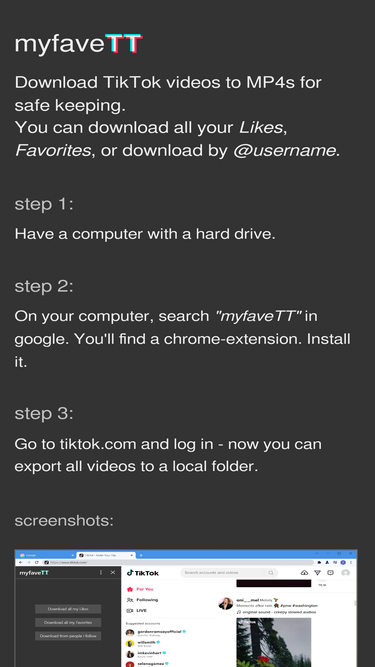 87%"Download to a local folder, and keep it synced with your tiktok account."