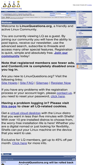 100%linuxquestions.org offers a free linux forum where linux newbies can ask questions and linux experts can offer advice. topics include security, installation, networking and much more.