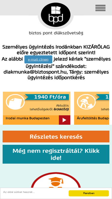 100%Regisztrálj a Biztospont Diákszövetséghez, hogy megtalálhassuk a számodra legjobb diákmunkát! Ne habozz, regisztrálj!