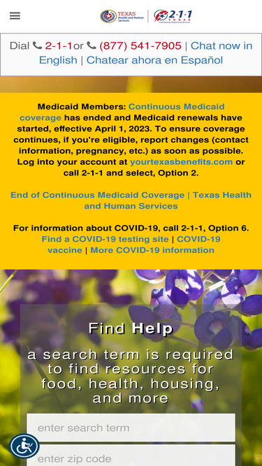 87%2-1-1 Texas, a program of the Texas Health and Human Services Commission, is committed to helping Texas citizens connect with the services they need.