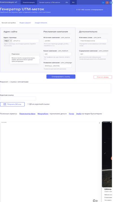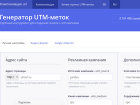 82%генератор utm-меток поможет создать правильные утм-ссылки для отслеживания статистики в яндекс метрике и гугл analytics. конструктор поможет разметить utm метками ссылки для директ, эдвордс, инстаграм, фейсбук, insales, тильда, вконтакте.