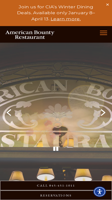 95%The American Bounty Restaurant, in Hyde Park, NY, is a casually elegant farm to table restaurant located on the Hudson Valley campus of The Culinary Institute of America.