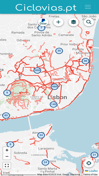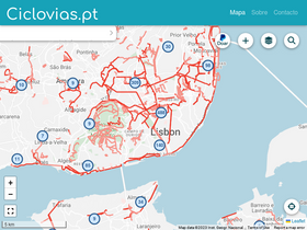 mapa editável das ciclovias de portugal e de outras estruturas relacionadas com o uso da bicicleta como meio de transporte.