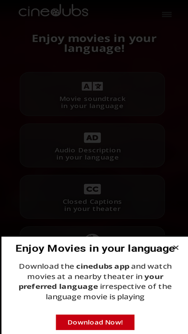 Download the cinedubs app for FREE and watch movies at a nearby theater in your preferred language irrespective of the language movie is playing