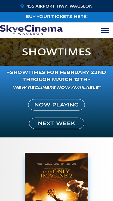 100%Kick back, relax and enjoy your favorite movie in our new recliner seating! Enjoy fresh popcorn, tasty treats and your favorite beverage! We can't wait to see you soon.