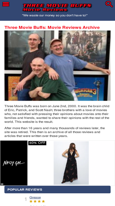 Don't waste your money on movies, let us waste ours for you! ThreeMovieBuffs.com is jam packed with our opinions about movies you should or shouldn't see.