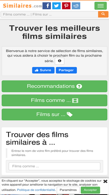 82%Trouver un film est un outil qui vous permet de trouver rapidement de bons films à voir. Il se base sur des critères proches des émotions que l'on ressent devant un film.