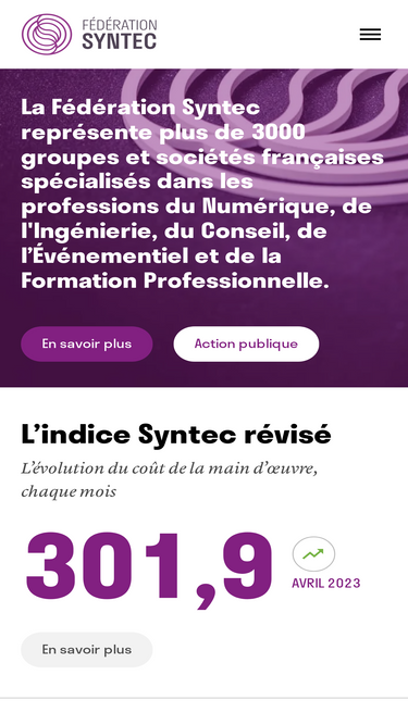 100%La Fédération Syntec représente cinq organisations professionnelles dans les domaines du numérique, de l'ingénierie, du conseil, de l’événementiel et de la formation professionnelle.