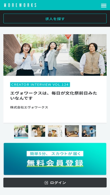 【まずは無料登録!】 実務経験2年以上のクリエイター向け転職エージェント。20代の初めての転職、30代のキャリアアップ、40代の事業戦略への参画など、業界専門コンサルタントに相談できます。