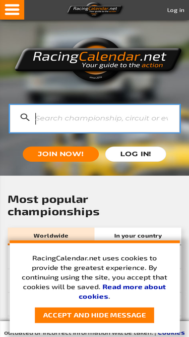 76%keep track of all events! from monza and formula one to the smallest club races at circuits you've never even heard of. welcome to racingcalendar.net!